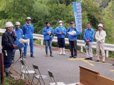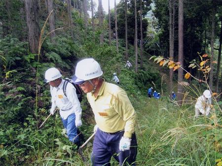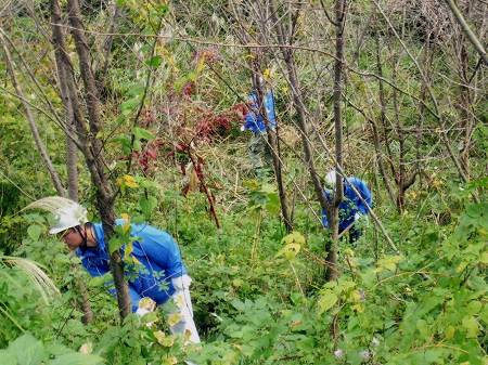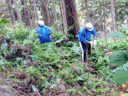 | 【活動内容】 絶好の作業日和に恵まれた中で、上野代表の司会で開会行事をはじめました。 開会の挨拶で、アサヒビール四国工場の西田副工場長が「アサヒビールは、地元の水を使用して飲料を製造しているので、水源地の森林の整備を全国9工場で実施しておりますが、これは全国に先駆けて四国工場からはじまりました。今後ともに石鎚水源の森くらぶ様と一緒に頑張りますのでよろしくお願いします。」と述べました。 続いて上野代表から当日の作用場所と草刈鎌の取扱い方法の説明があり、開会行事を午前9時40分に終わり草刈作業をはじめました。 当日の作業は、愛媛新聞社西条支局の竹下世成支局長が取材にきました。 草刈作業は、午前11時50分に終了し、支給された弁当を食べて午後12時30分に現地解散をしました。 |