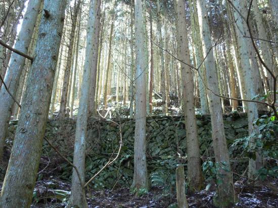 しばらく登ると植林木の中に石垣の跡が見えてきました。昔はこのあたりにも棚田が広がっていたことでしょう。