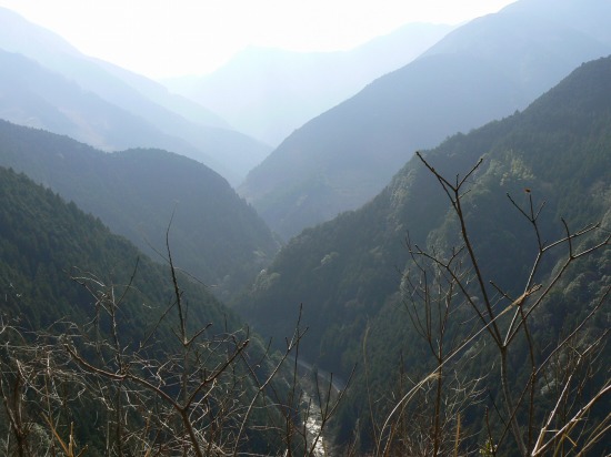 深い谷底に道が見える。