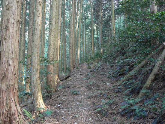 その後、植林木の中の道を登る。