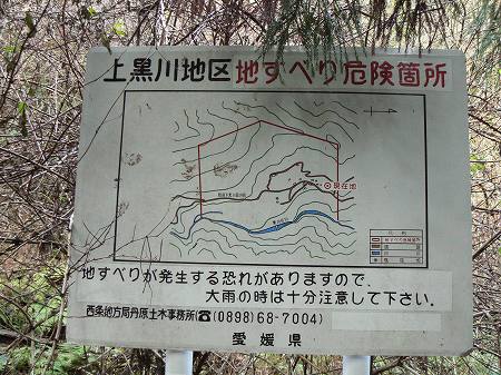 学校跡を過ぎてしばらく行くと、地すべり危険個所の標識があった。