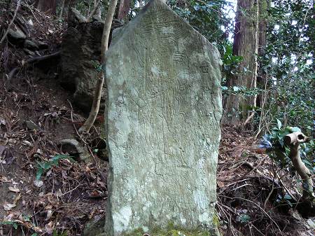 お地蔵さんの近くにある石に刻まれた不動明王像。
