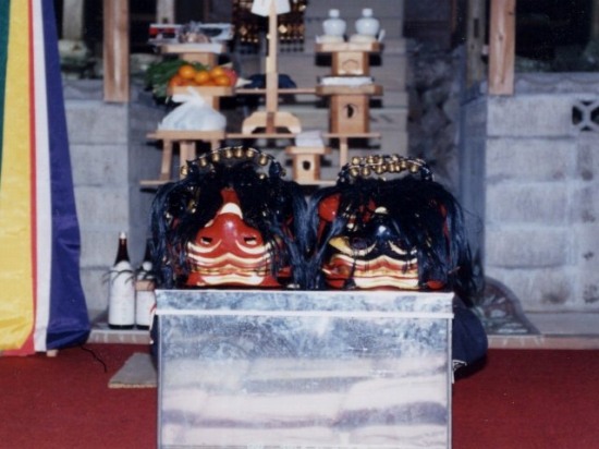 倉庫の中にあった獅子頭です。(平成元年11月3日撮影)