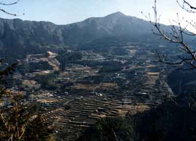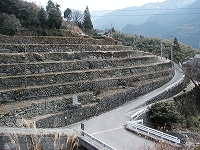 東宮から市道川西線を車で登り、かなり山の尾根に近づいたところに傾斜がゆるやかで開けた集落が見えてきます。 「なる」は、平坦地を意味します。下の国道から見上げても、なかなかわかりにくい集落です。山の中腹に大きく広がった平坦地から「おおなる(太平)」と名付けられたと思われます。 昭和40年代後半に林道が到達するまでは、車の入らない集落でした。この荒川林道は、現在市道となっています。 かつては集落全体に棚田や段々畑が広がっていましたが、今はかなりの部分が耕作放棄地になってしまっています。また、集落が広がっていたところで、今は山林になっているところも少なからずあります。 集落からは、黒森山、沓掛山、笹ヶ峰、寒風山が望め、はるか下に西条市街地が広がり、すばらしく眺めのよいところです。 かつては、たくさんの人が住んでいましたが、過疎化が進み、たいへんさみしい集落となりました。 |