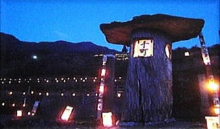 千町集落の中腹のなだらかな斜面に田園風景が広がっている地区です。集落で唯一棚田の景観が残るところですが、棚田も多くが畑になってきています。集落には、ハゼの大木で造られた木製の灯篭があり、集落のシンボル的存在になっています。