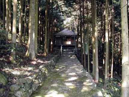 豊臣秀吉の四国征伐の際に討たれた高峠城の虎武丸と生母菊姫を祀った 神社です。 筋病に効験ある神様として祀られ、今でも多くの人が訪れています。 姫は生前冷酒を好んだため、願いをするときには、オリカケダルに御神酒を入れて供えます。 祠の手前の道横には、青石の石碑が建っています。 石碑には、「つゆ超えし土佐大峯の我が一行 越すに越されぬ天正の役」とあります。 |