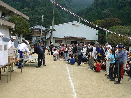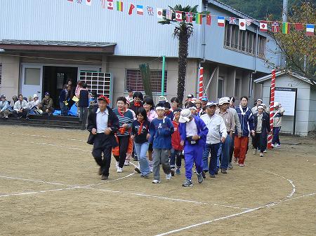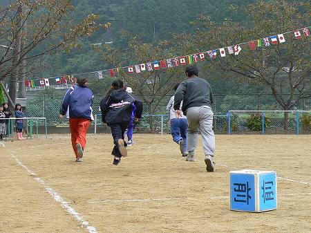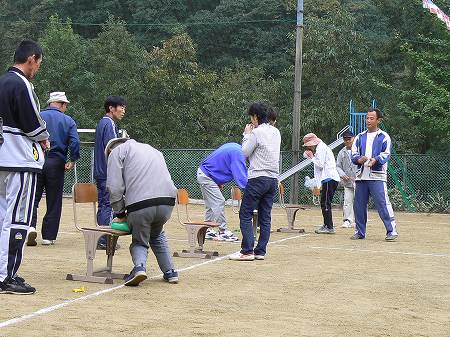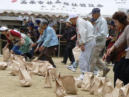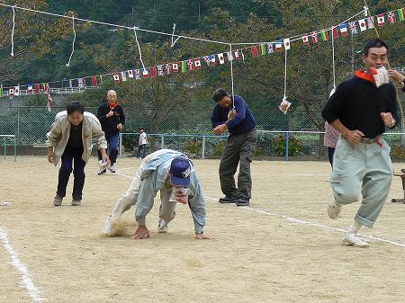 午後の競技の開始。お年寄り対象の「宝拾い」 結構みんな走るのが早かった。 |