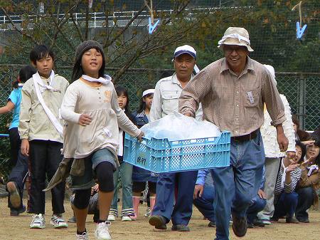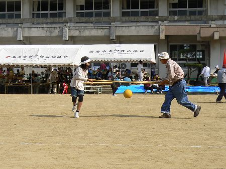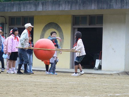 | 最初は「大球はこび」 はよ、はよ、こっちこっち〜。おばちゃん気合いが入ってますねえ。 |
