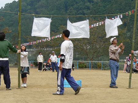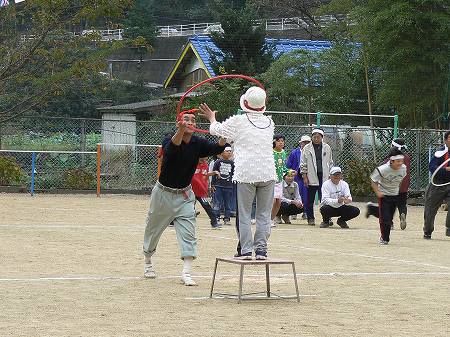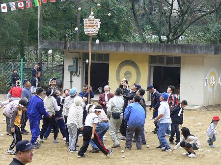 次は「玉入れ」 白組頑張ってます。あれ〜後ろの方にどこかで見た顔が・・。 |