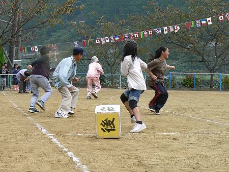 赤組頑張ってますが、結果は引き分けでした。勝敗はじゃんけんで決めることに・・。 |