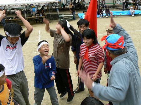 | さて、どちらが勝ったかな〜。結果は、赤組の圧勝でした。 |