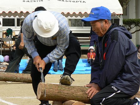 こちらも加茂地区ならではの「丸太切り競争」です。