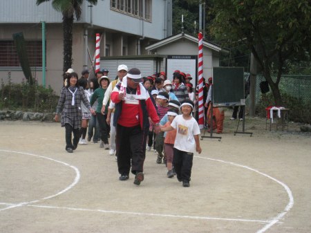 開会式、ラジオ体操が終わりいよいよ競技がはじまった。まずは「突撃ジャンケン大会」堂々の入場行進。 |