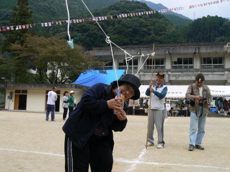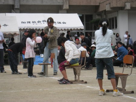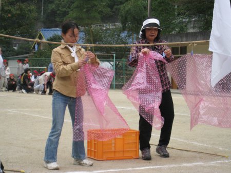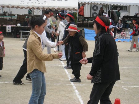 | 「ひっぱれ30」という競技。箱のひもを引っ張りだして旗を回って帰ってくる。中には何十メートルもあるひももあった。 |