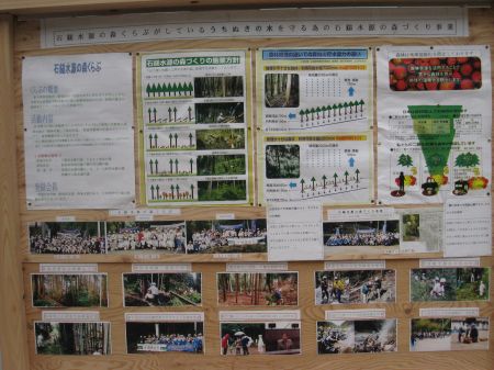 | 石鎚水源の森くらぶのパネル展示。水源の森くらぶの皆さんは毎年山間部の住民とともに山のまつりを盛り上げてくれている。 |