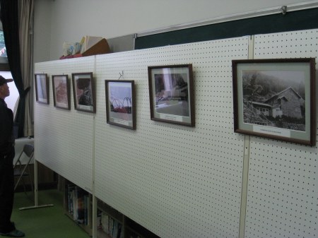 部屋の中では懐かしの写真展。加茂地区にかつてあった小中学校の写真が展示されていた。ああ・・懐かしい。 |