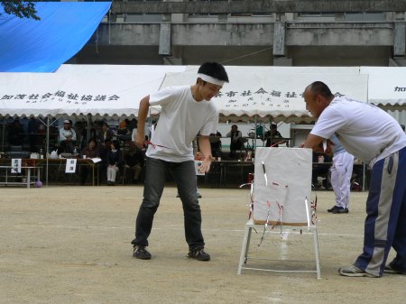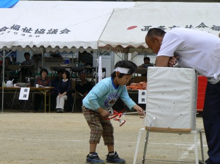 | じゃんけんをして勝ったら前に進める。3回連続して勝てばゴールという種目。制限時間内にどれだけゴールするかが勝負。 |