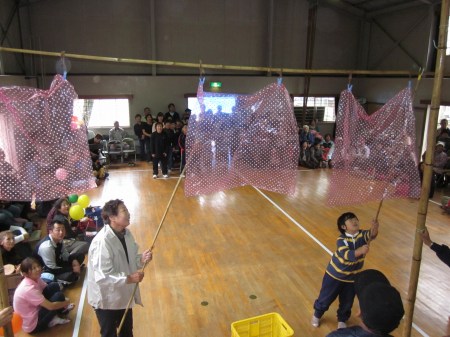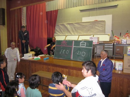 加茂地区の一大イベントである総合文化祭・運動会が今年も加茂公民館で行われました。朝から小雨がぱらつくあいにくの天候でしたが、加茂地区住民、加茂の出身者とその家族、石鎚水源の森くらぶなど200人を超す人が集まり大いに盛り上がり、静かな加茂の山里に歓声が響き渡りました。途中から雨が激しくなったので会場を体育館に移して競技が行われました。