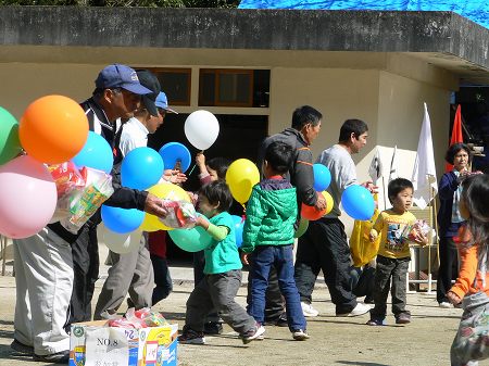 | 未就学の「幼児」のふうせん拾い。今年もたくさんの子どもたちが参加してくれた。 |