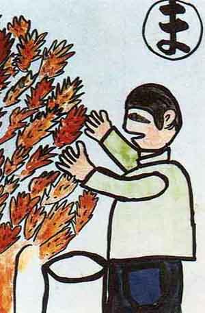 節分 2月3日か4日が節分で、翌日が立春、節の節目という意味で 節分といいます。 竹串に鬼のバラ(タラの木)と鰯の頭をさして、戸口や 窓に立てる風習があります。 病気とか災いは鬼、この鬼を追い払うため豆まきをします。 大豆をこうらであぶって一升ますに入れ、鬼のバラと 鰯をそえて大黒様に供え、夕方になると「福は内、鬼は外」 と大声をあげながら豆をまきます。 桓武天皇の時代、中国から伝来したもので、この頃は 朝廷の行事でしたが、神社・寺・民家と一般にも広まり ました。 |