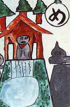 水田のお薬師さん 水田のお薬師さんは、釜切山の手前の小谷の側に祀られてあります。 目を直してくれるお薬師さんとして信仰しております。 あらたかなお薬師さんの分身が、藤之石のあたご地蔵の境内の山手にお祀りしてあります。 願かけをして全治いたしますと、タコの絵を書いてお供えするそうです。 |