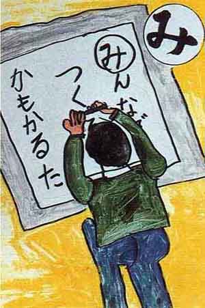 かるた イロハカルタには、江戸かるたと京かるたがあって、犬棒かるた (犬も歩けば棒にあたる)は江戸かるた。 心を豊かにする公民館活動で、生活文化をとりあげ、昔の遊具づくりを試みました。 塩出光雅先生をお迎えして、カルタの文句の作り方を教わり、近藤泰司先生を お迎えして絵の書き方を教わり、5〜6年生でジャンボ加茂カルタを作りました。 郷土の自然、地名、民族などを網羅した、ジャンボ加茂カルタが昭和54年完成 しました。 体育館いっぱいに並べて、周囲から走って出てとるカルタ取りはとても たのしい思い出があります。 |