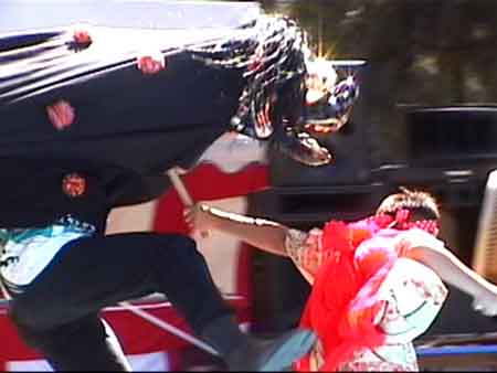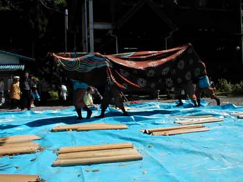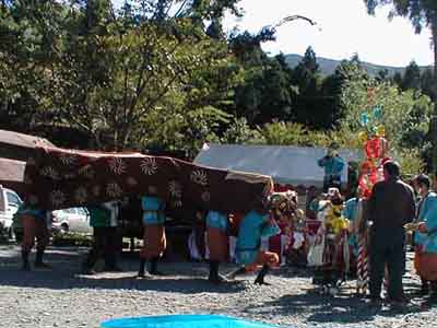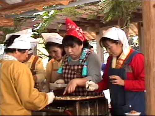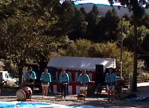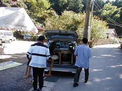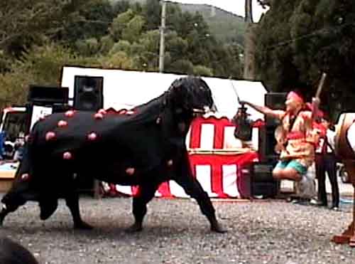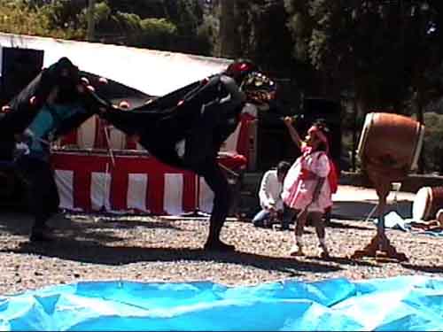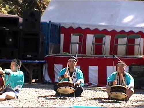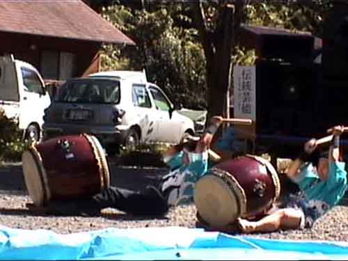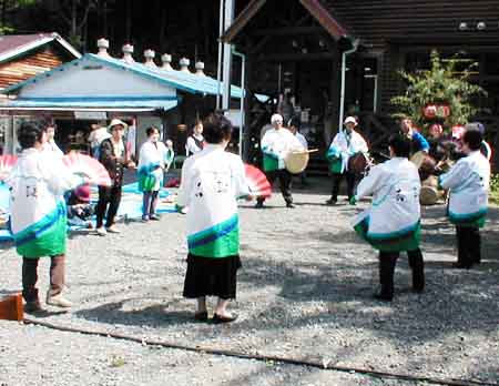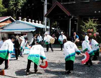 にぎやかな太鼓の音と歌声が山中にこだましました。
