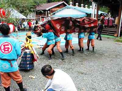 地元大保木地区の東宮神社の獅子舞の流れを引き継いでいる