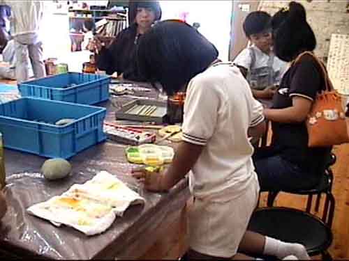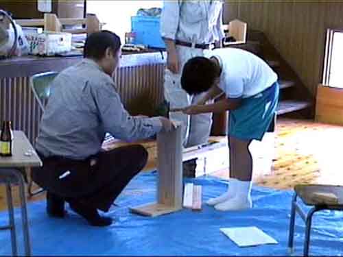 | 講堂の中では、木工教室とペーパーウエイト(文鎮)コンテストが行われていて、