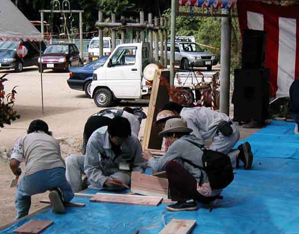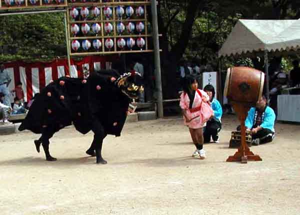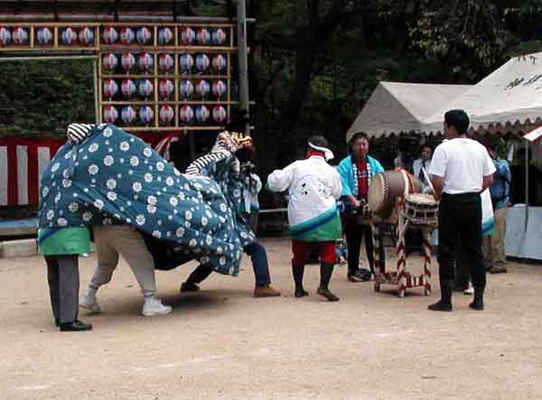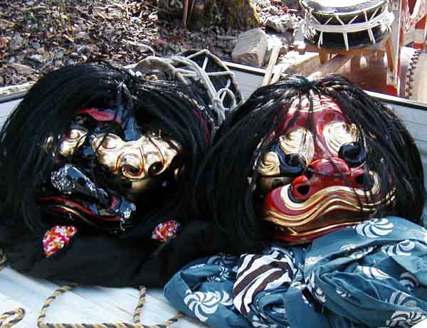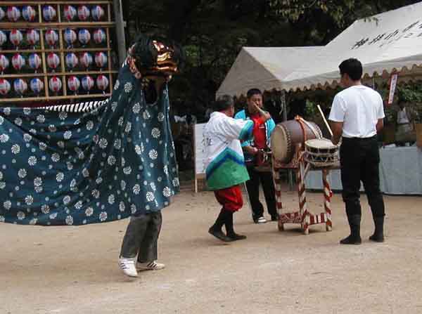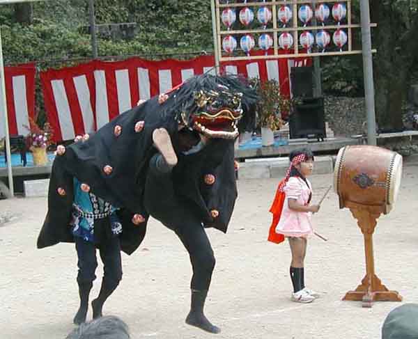 | 続いて、地元大保木地区の東宮神社のお祭りで披露される「大保木の獅子舞」です。