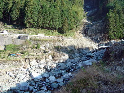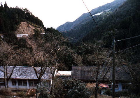 平成17年8月中旬に寸断されていた道路が仮復旧(時間帯により通行可)したことにより、平成17年9月1日学校が再開されました。 |