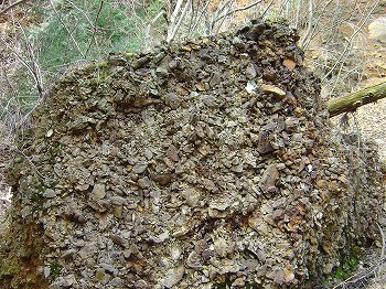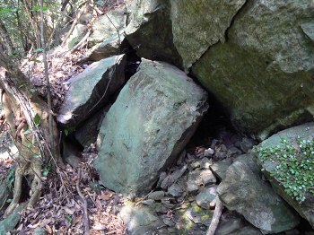荒川の下分から李集落へ行く歩道の途中にあった滑石を算出していた鉱山です。