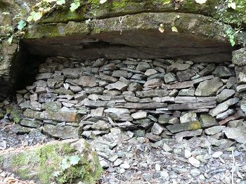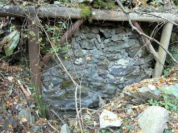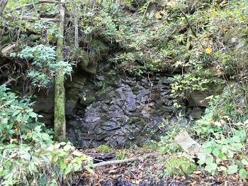 山中に残る坑口跡(入り口は土でふさがれている) |