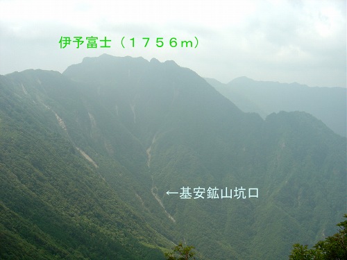基安鉱山は、高知県との県境にある伊予富士(標高1756m)