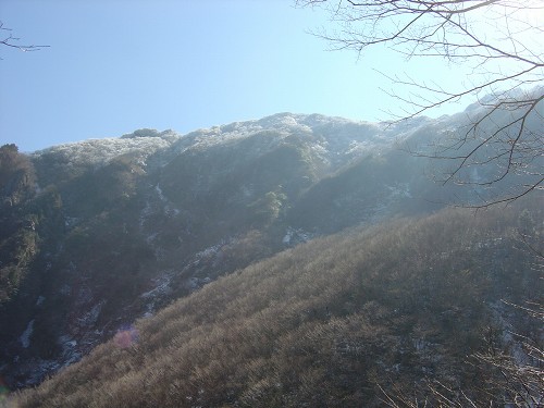 坑口付近から見上げた伊予富士(1756m) |