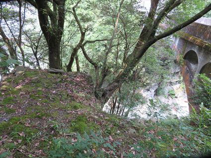 迫門橋の下流側にある軌道用の橋台(令和2年撮影)