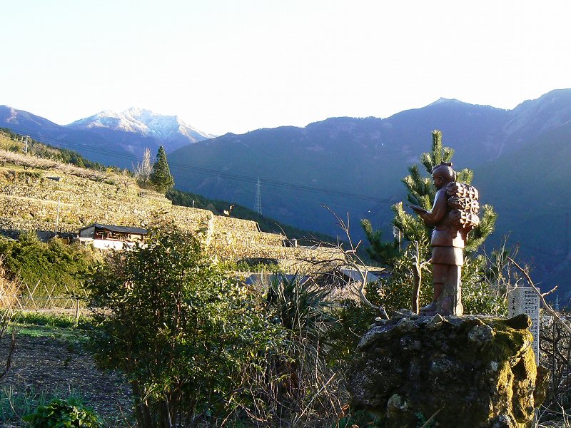 千町小学校跡地に残る二宮金次郎像