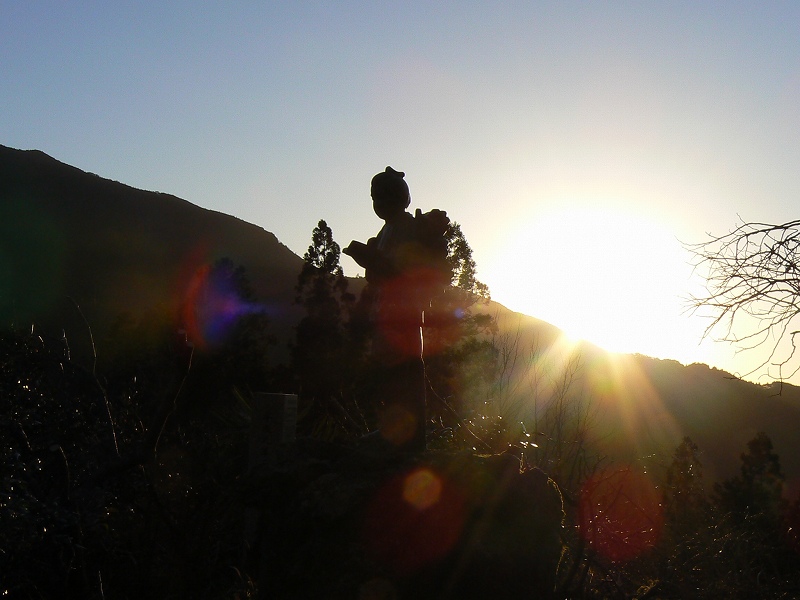 二宮金次郎像と夕日