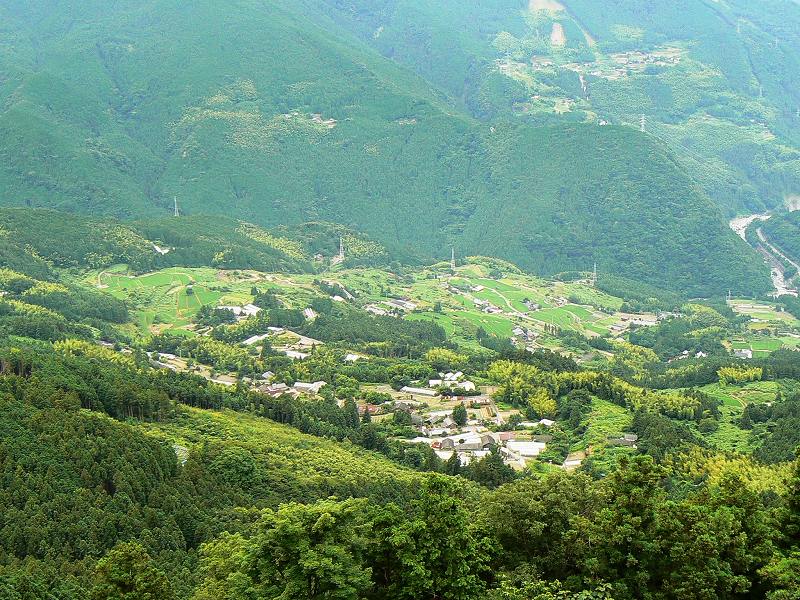 ![]() 櫛ヶ峰登山道から見下ろした藤之石本郷・千町集落(向こう側に見えるのは荒川集落) |