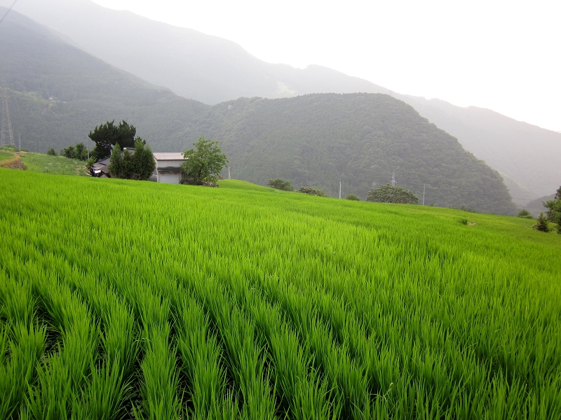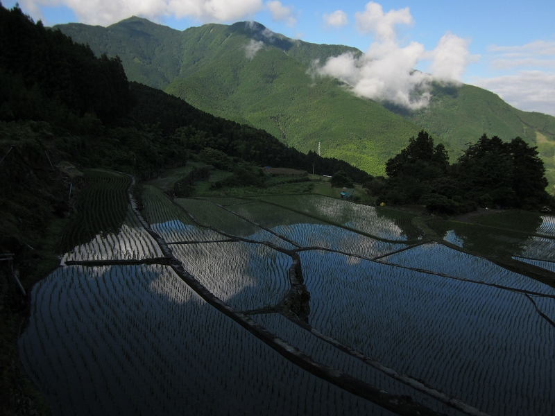 千町中屋集落の棚田(後方は高森(経ケ峰)1192m)