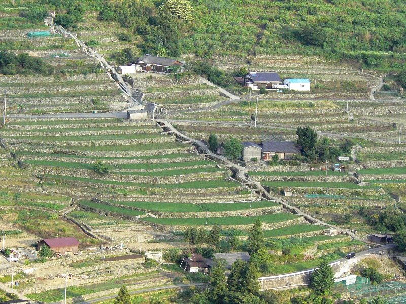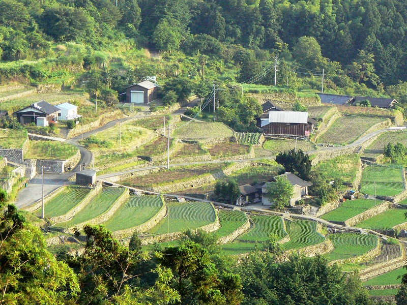 丸山から千町の棚田を望む(岡、御代地、宮の首集落)