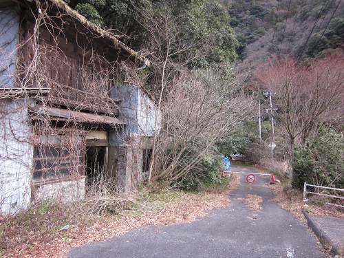 旧道沿いにある廃屋。旧道は通行止めになっている