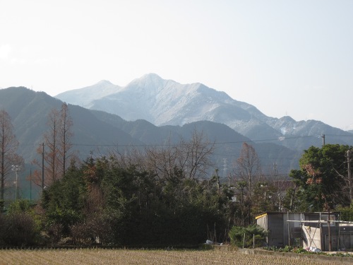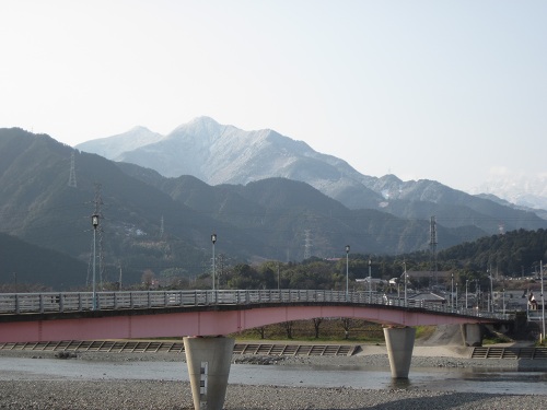 加茂川メロディー橋付近から撮影・右後方は石鎚山