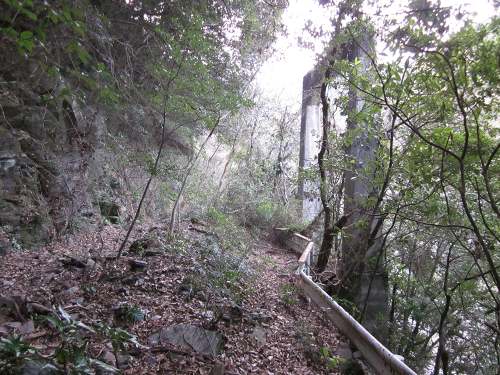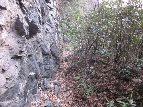 旧道に入ってみた。岩がむきだしになっている。