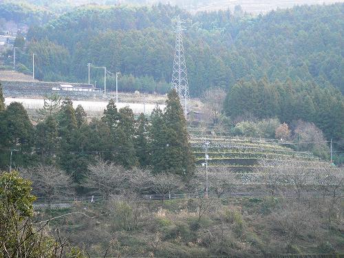 国道194号線から見上げた千町集落