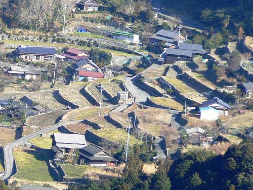 千町の棚田・菖蒲集落跡からの眺望(平成26年1月19日撮影)
