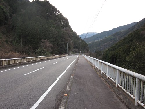 橋の上から上流側(高知県方面)を望む。正面の山は扇山