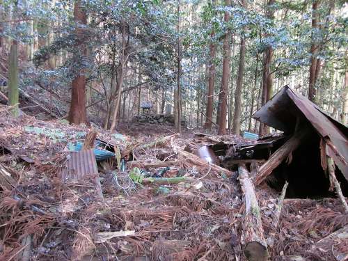 ![]() 菖蒲集落跡に到着。近くには神社跡?がある |