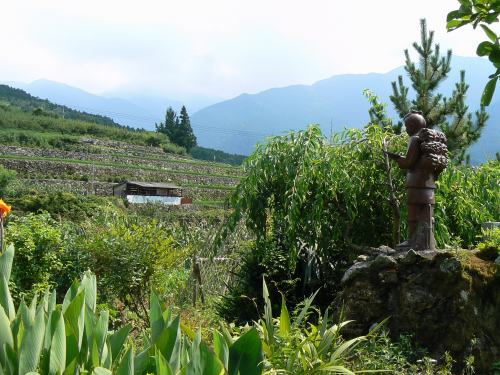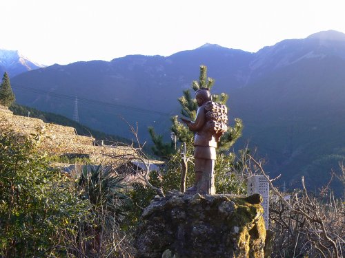 | 瓶ヶ森山頂 | 千町小学校跡地の二宮金次郎像 |