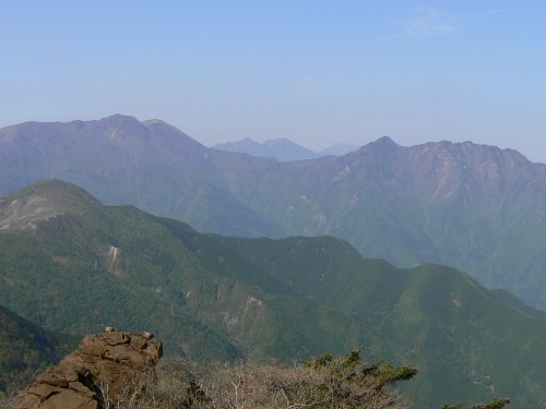 | 黒森山〜寒風山の山並み(経ヶ峰山頂付近から) | 石鎚山(経ヶ峰山頂から) |